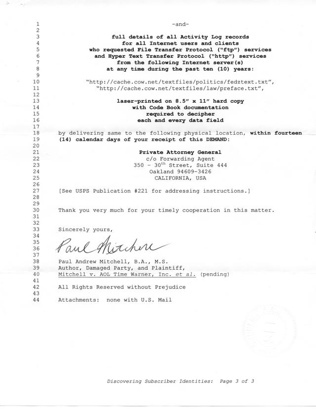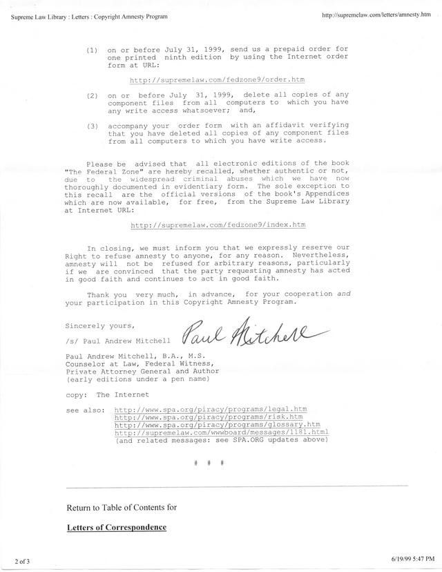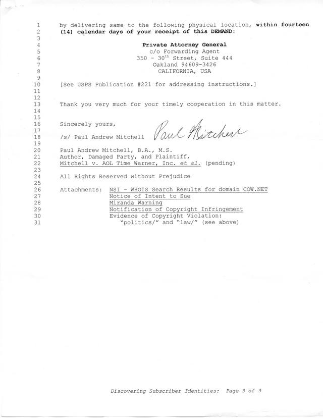 In which Paul Mitchell not only threatens to sue, but sends an abbreviated Miranda Warning by mail